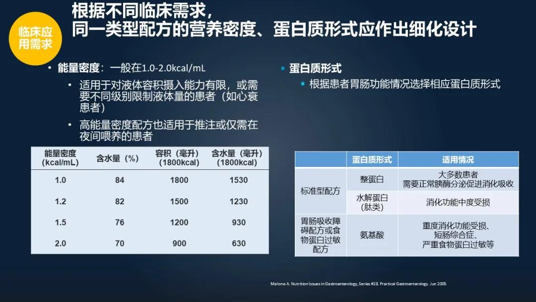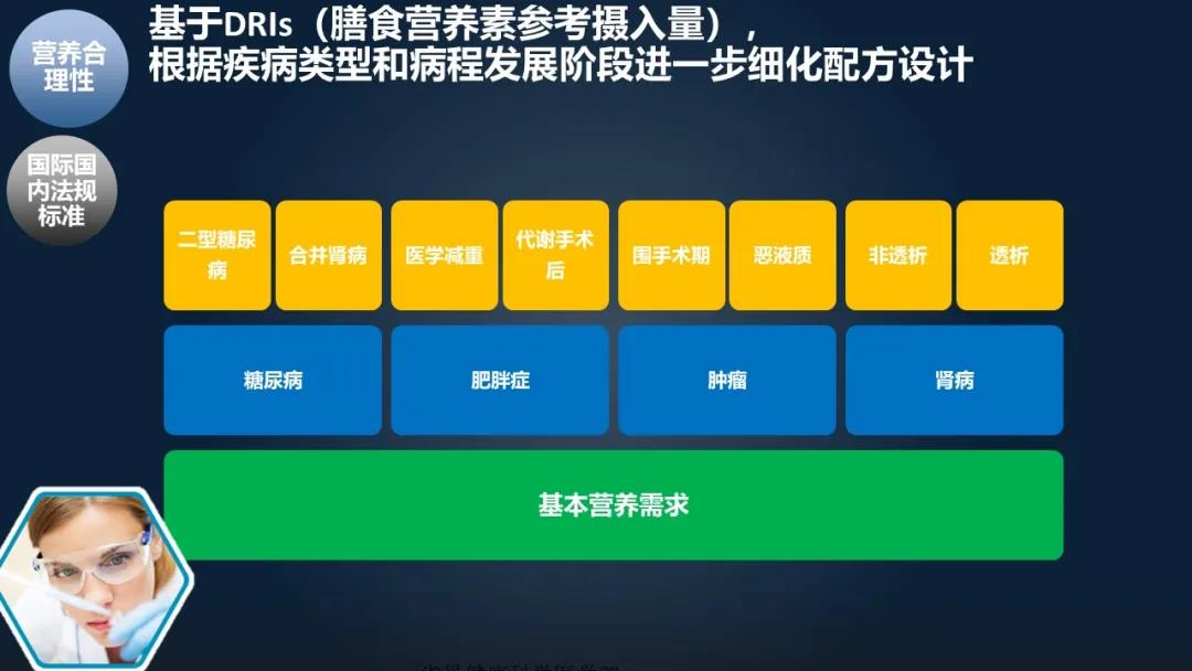 那么,這里針對(duì)不同疾病設(shè)計(jì)的配方中,也要考慮到,每一個(gè)疾病的消耗等情況是不一樣的。那不同疾病情況下,它的營養(yǎng)設(shè)計(jì)也不一樣。