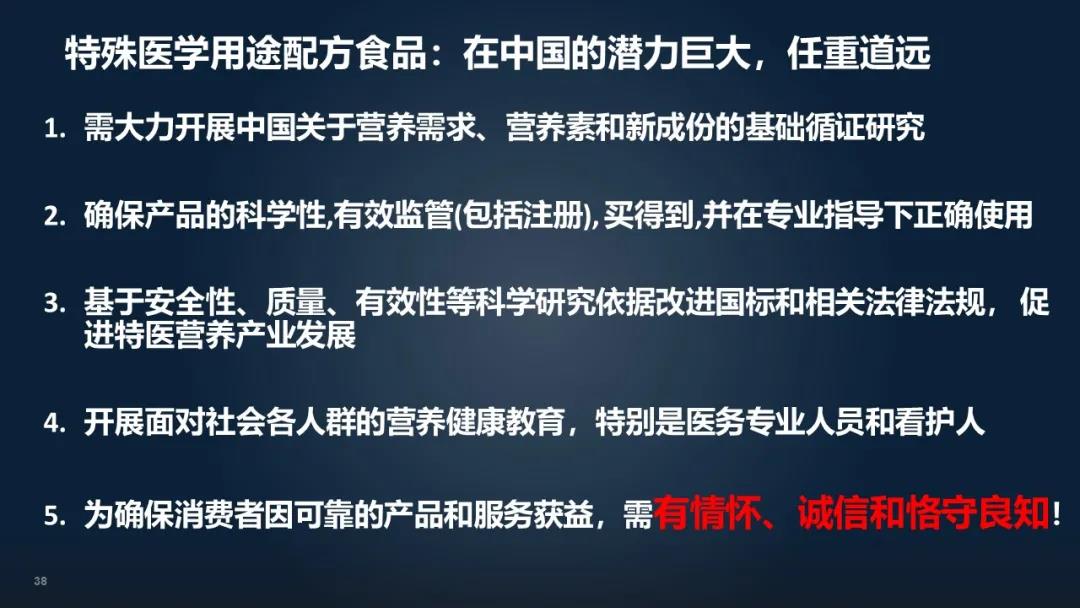 所以,特醫(yī)食品在中國的潛力是巨大的,但是我們的工作任重而道遠(yuǎn)。因?yàn)槭裁矗?/span>