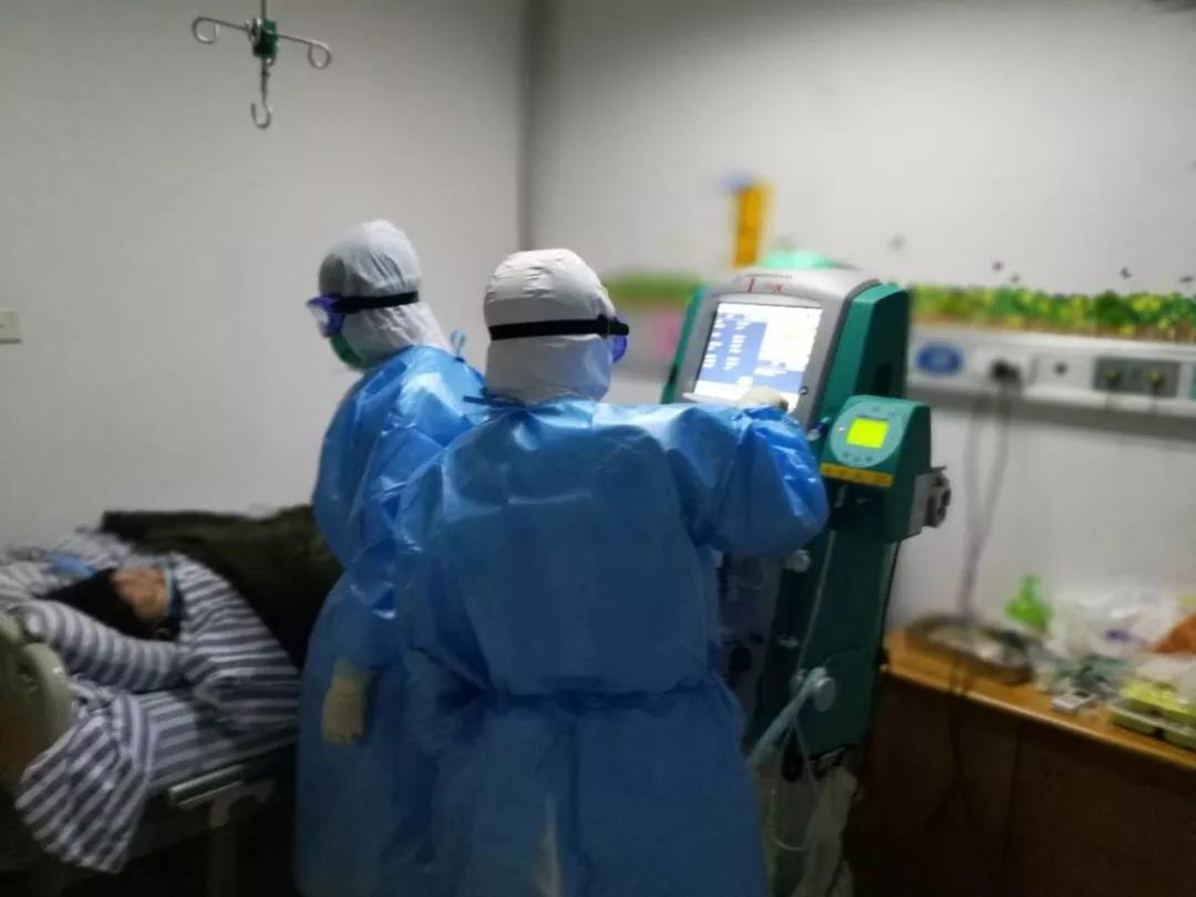 治療小組由重癥醫(yī)學(xué)科邱宇安主任、鄭志琴護(hù)士長(zhǎng)、劉鵬醫(yī)師、熊小妹、董麒麟護(hù)士組成。首先將血液凈化儀、輸液泵、微量泵及相應(yīng)耗材藥品轉(zhuǎn)運(yùn)至隔離病區(qū)。在隔離病區(qū)黃建主任、劉媛護(hù)士長(zhǎng)及值班護(hù)士胡慶紅、許碧雯的指導(dǎo)下,嚴(yán)格三級(jí)防護(hù)標(biāo)準(zhǔn),進(jìn)行醫(yī)務(wù)人員標(biāo)準(zhǔn)預(yù)防。