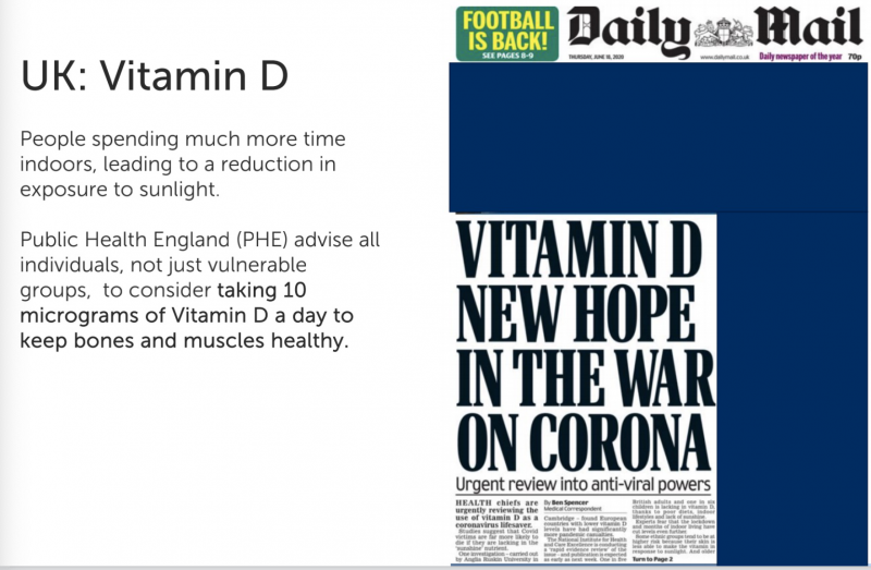 自疫情發(fā)生以來,消費(fèi)者消費(fèi)模式發(fā)生巨大改變,消費(fèi)者也越發(fā)將服用膳食補(bǔ)充劑視為健康管理的一種選擇。美國消費(fèi)者出于運(yùn)動塑形、免疫預(yù)防、腸胃改善等多種目的選購補(bǔ)充劑產(chǎn)品。新冠疫情期間及未來,會對膳食補(bǔ)充劑市場帶來發(fā)展機(jī)遇?! ?/span>