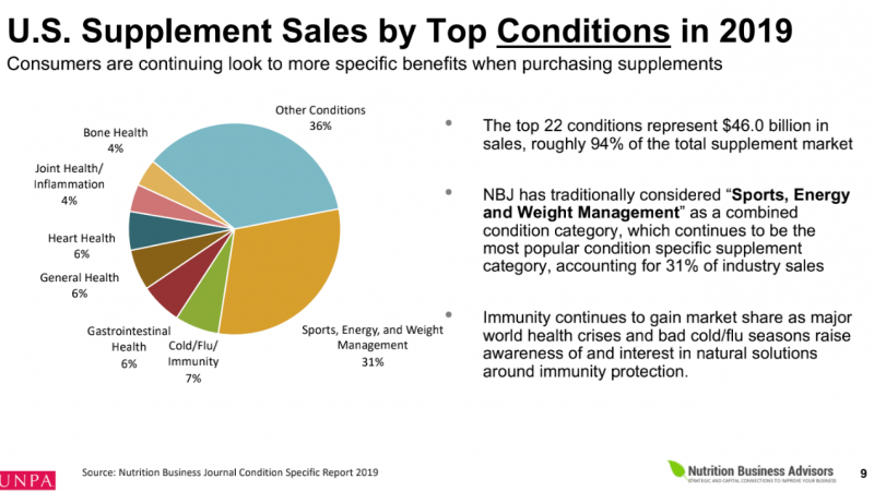 美國膳食補(bǔ)充劑市場銷售總額持續(xù)增長,傳統(tǒng)銷售模式受到了沖擊,電商銷售額快速發(fā)展。當(dāng)下值得關(guān)注的市場趨勢和相關(guān)產(chǎn)品品類有:免疫健康產(chǎn)品、腸道健康產(chǎn)品、益生菌產(chǎn)品、睡眠改善產(chǎn)品、腦健康產(chǎn)品、炎癥產(chǎn)品、非片劑產(chǎn)品等等?!?/span>
