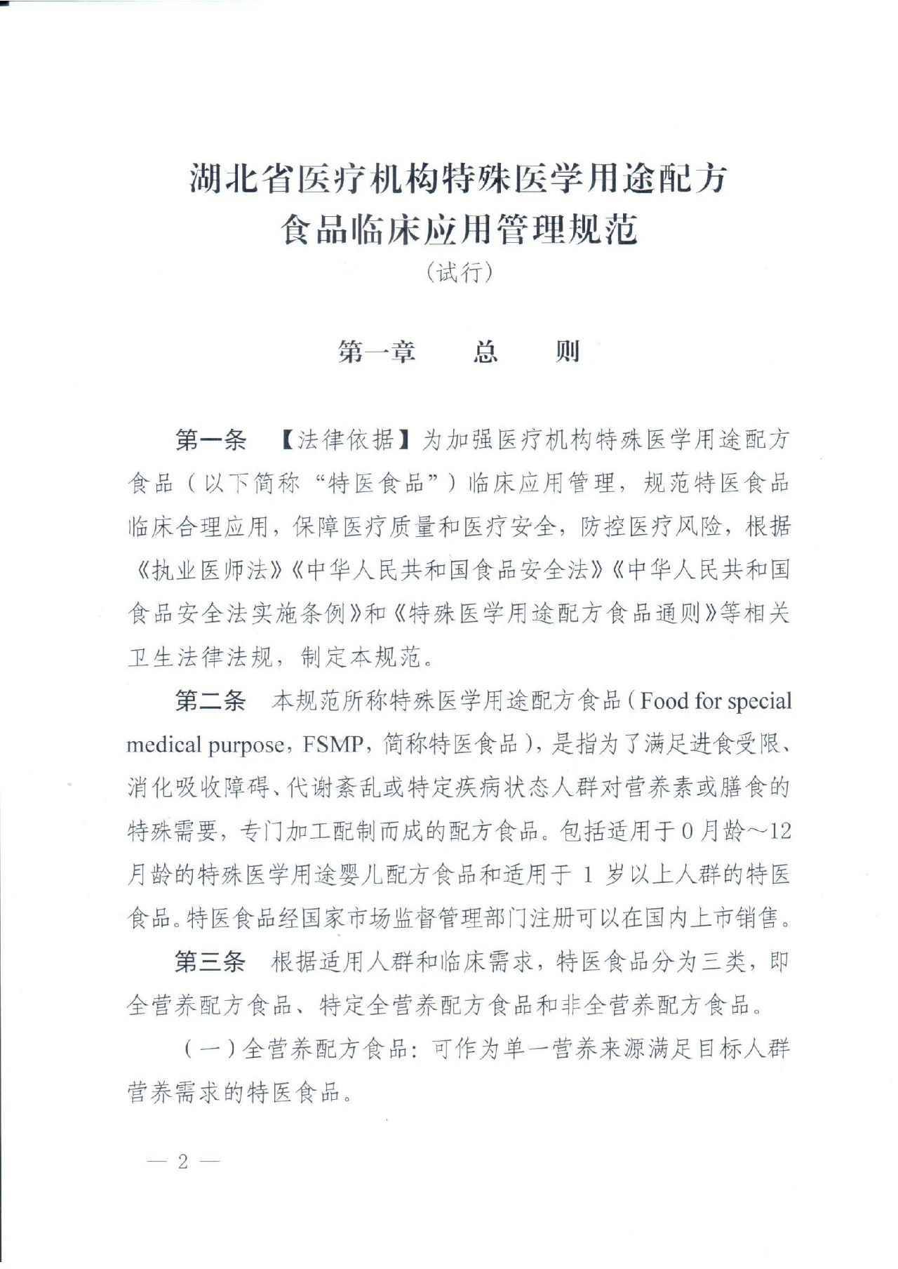 湖北省衛(wèi)健委印發(fā)《湖北省醫(yī)療機(jī)構(gòu)特殊醫(yī)學(xué)用途配方食品臨床應(yīng)用管理規(guī)范(試行)》