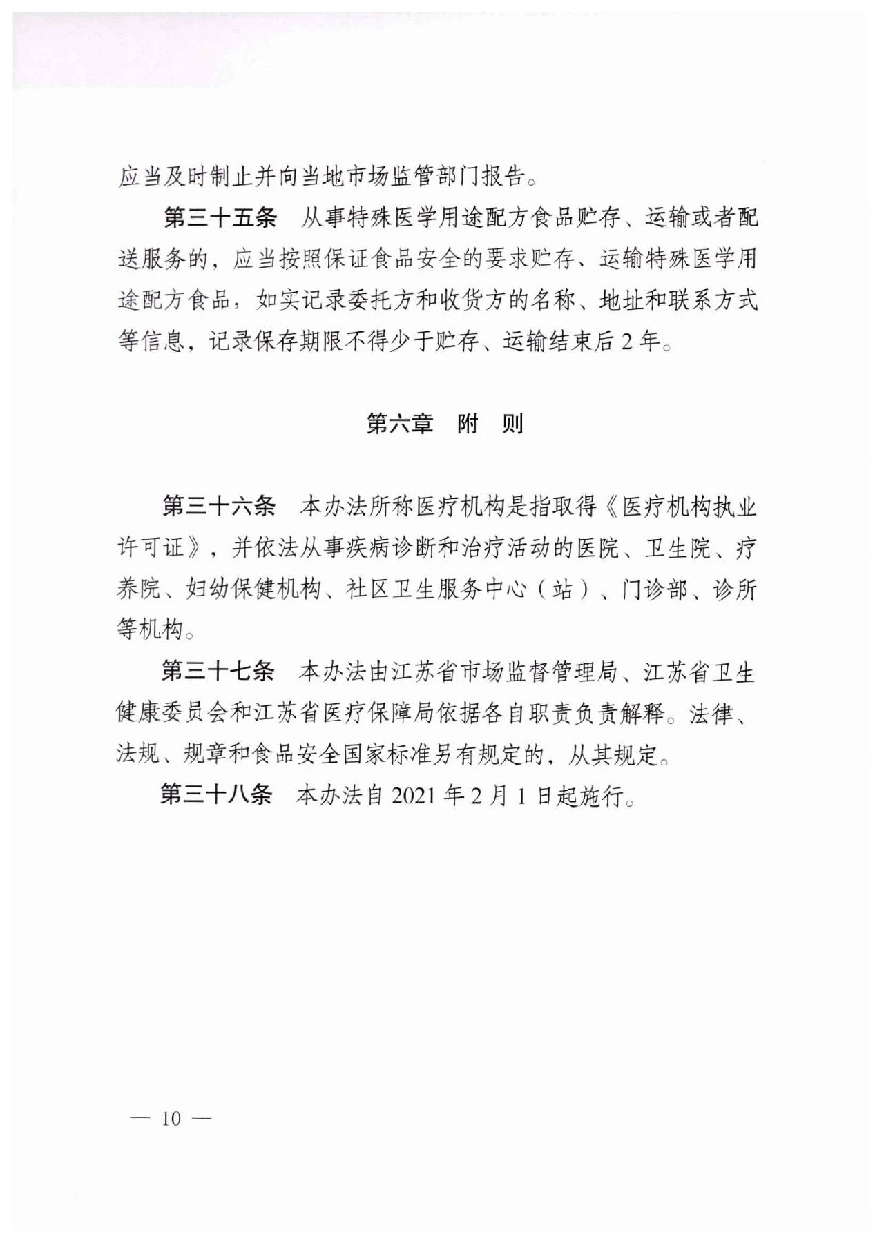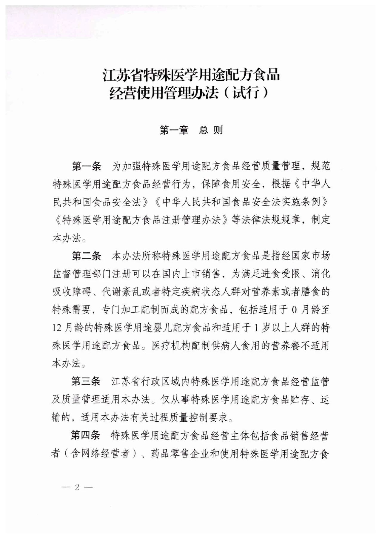 關(guān)于印發(fā)《江蘇省特殊醫(yī)學用途配方食品經(jīng)營使用管理辦法(試行)》的通知